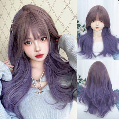 INSTOCK ★PURPLE★ Korean Wavy Curly Airy Bangs Long Hair Wig Cosplay [Adjustable/Breathable]